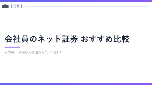 選び方ガイド 会社員のネット証券 おすすめ比較【2026年・副業収入も運用したい人向け】 会社員×副業×投資の視点で、SBI・楽天・マネックス・松井・auカブコム・DMMの6社を比較。本業+副業収入を最大限運用する証券口座の選び方を実録で解説。 2026.04.18 選び方ガイド